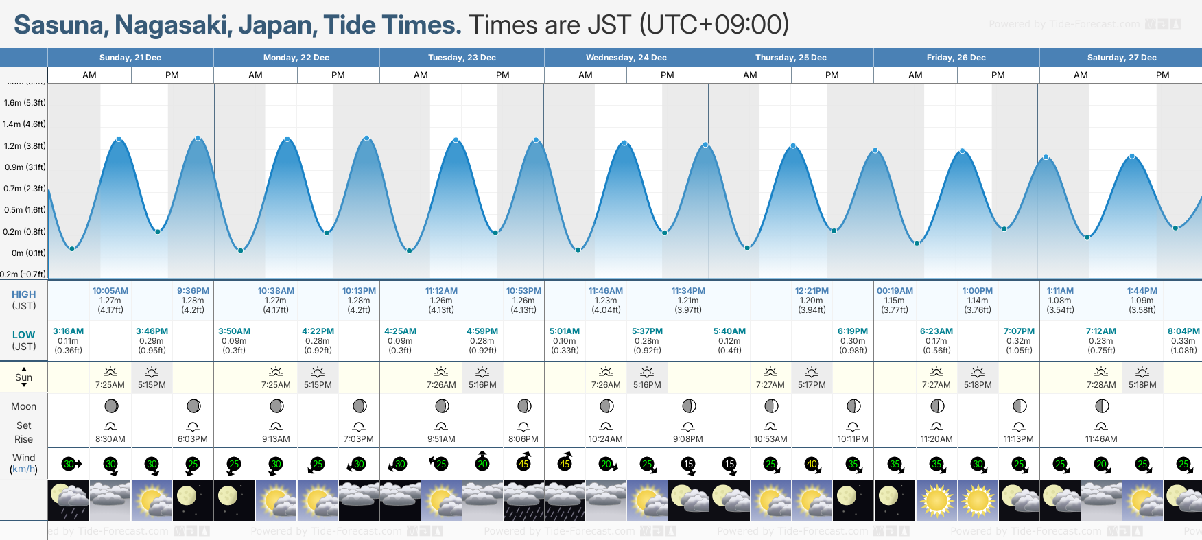 NOTE: Use of this site for Sasuna, Nagasaki, Japan tide times is subject to our terms.