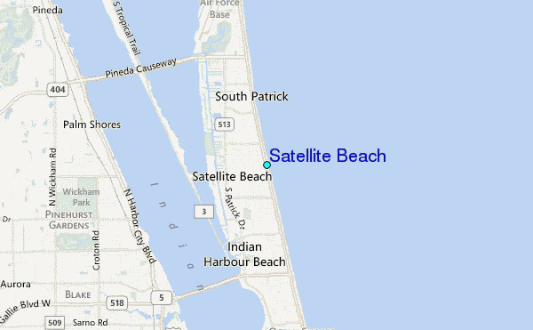 Use this relief map to navigate to tide stations, surf breaks and cities that are in the area of Satellite Beach.