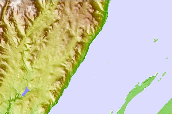 Use this relief map to navigate to tide stations, surf breaks and cities that are in the area of Sault Au Cochon, Quebec.