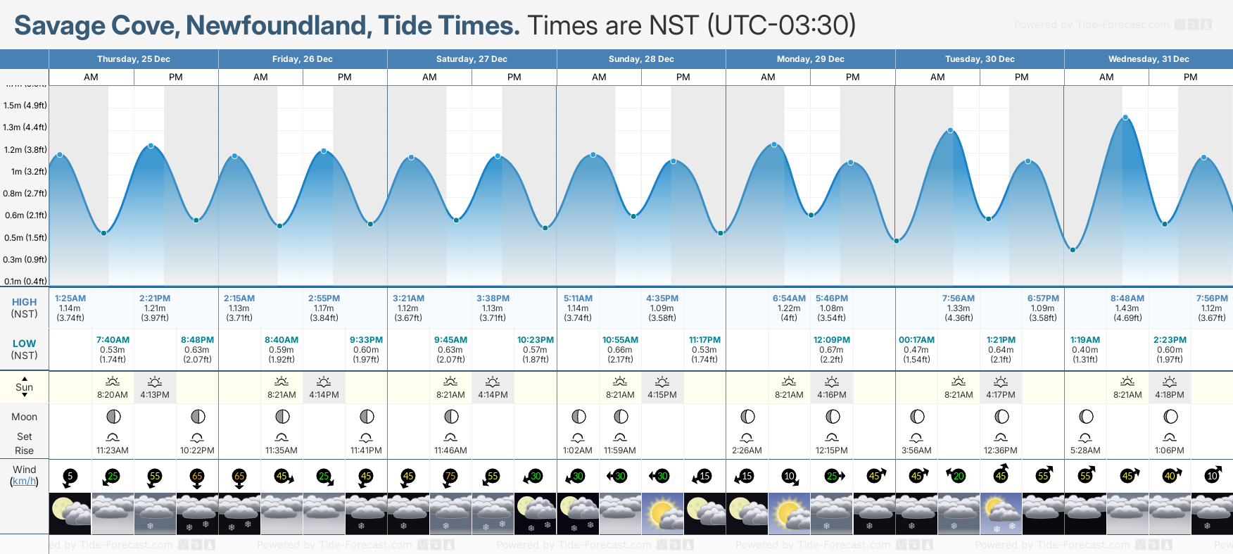 NOTE: Use of this site for Savage Cove, Newfoundland tide times is subject to our terms.