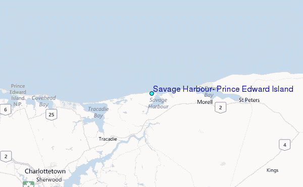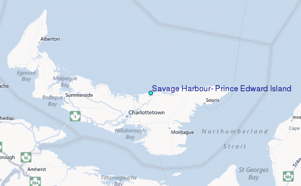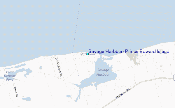 Use this relief map to navigate to tide stations, surf breaks and cities that are in the area of Savage Harbour, Prince Edward Island.