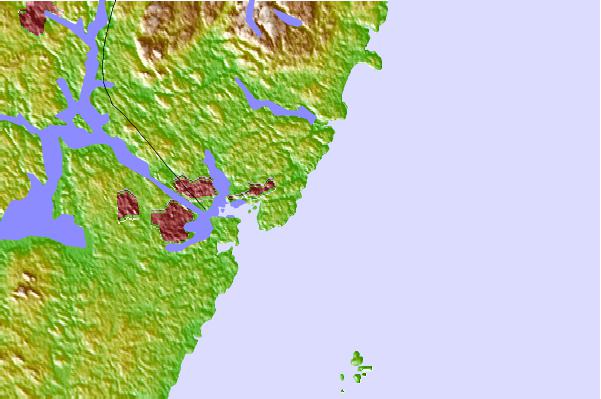 Use this relief map to navigate to tide stations, surf breaks and cities that are in the area of Seapoint, Cutts Island, Maine.
