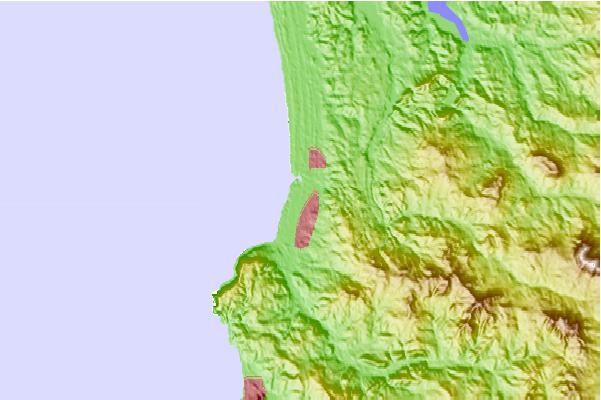 Use this relief map to navigate to tide stations, surf breaks and cities that are in the area of Seaside, 12th Avenue bridge, Necanicum River, Oregon.