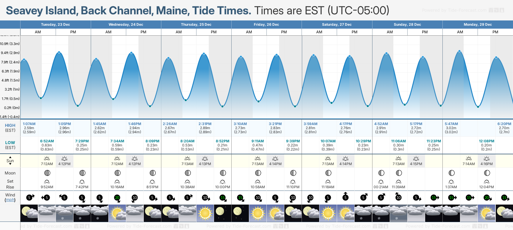 Tide Times for Seavey Island, Back Channel (tomorrow): Wednesday 24 December 2025