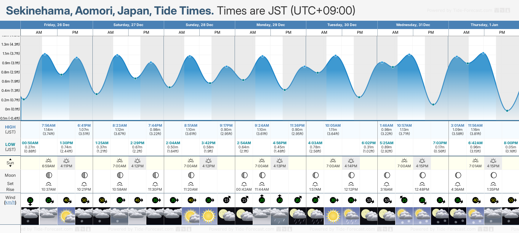 NOTE: Use of this site for Sekinehama, Aomori, Japan tide times is subject to our terms.