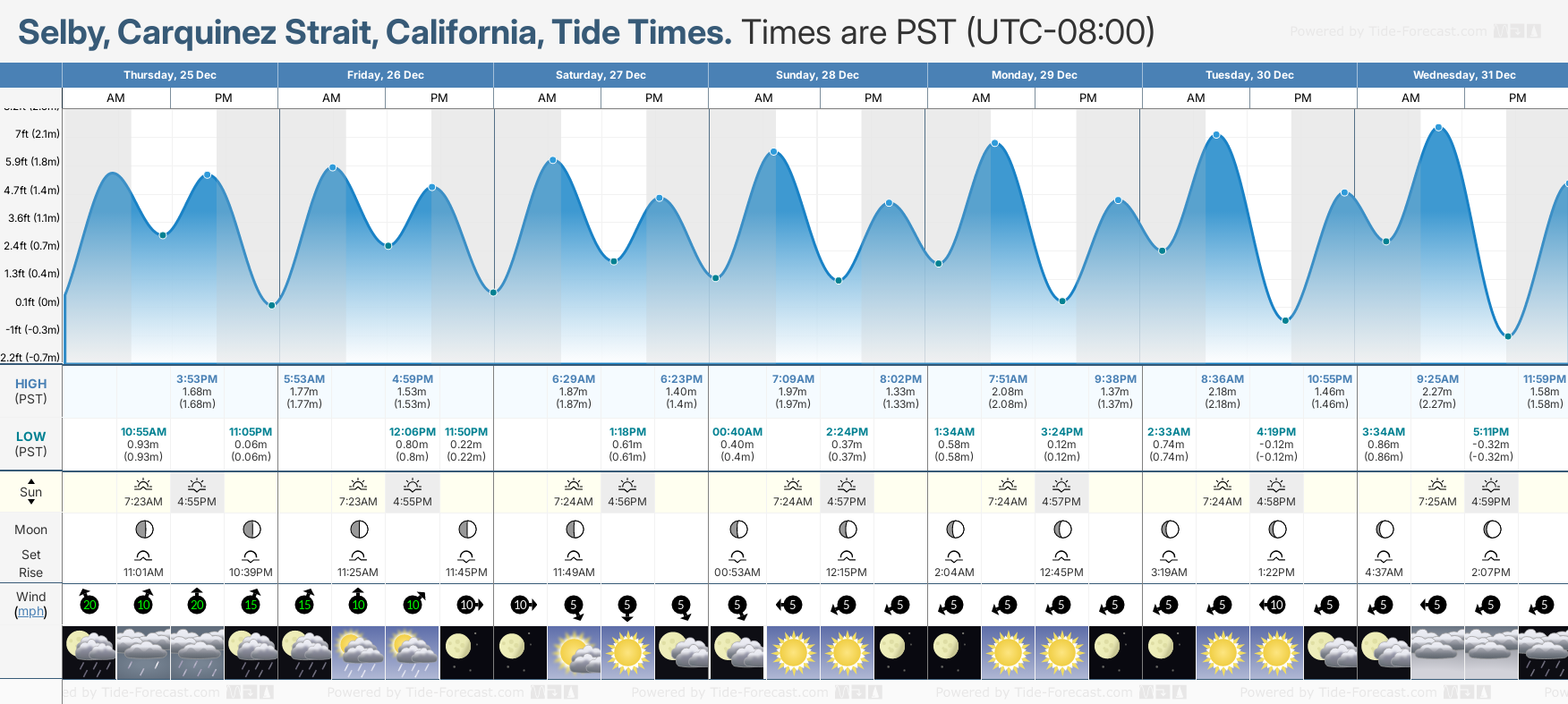 Tide Times for Selby, Carquinez Strait (tomorrow): Thursday 25 December 2025