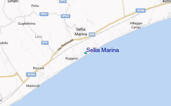 Use this relief map to navigate to tide stations, surf breaks and cities that are in the area of Sellia Marina.
