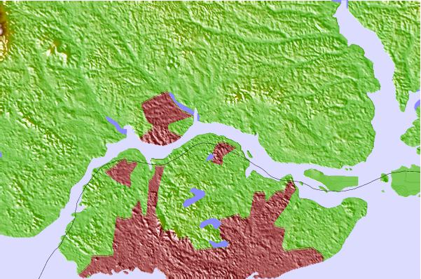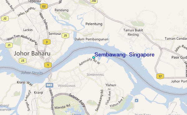 Use this relief map to navigate to tide stations, surf breaks and cities that are in the area of Sembawang, Singapore.
