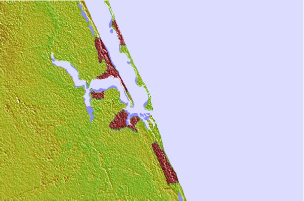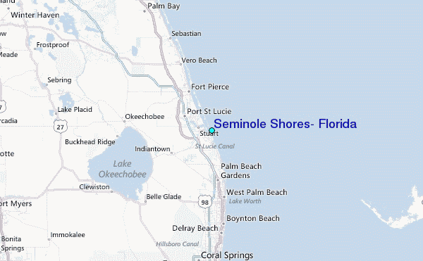 Use this relief map to navigate to tide stations, surf breaks and cities that are in the area of Seminole Shores, Florida.