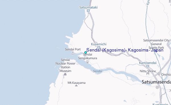 Use this relief map to navigate to tide stations, surf breaks and cities that are in the area of Sendai (Kagosima), Kagosima, Japan.
