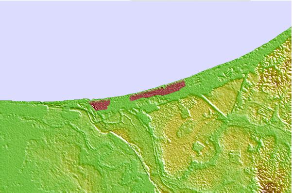 Use this relief map to navigate to tide stations, surf breaks and cities that are in the area of Seria.
