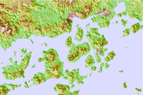 Use this relief map to navigate to tide stations, surf breaks and cities that are in the area of Setoda, Hirosima, Japan.