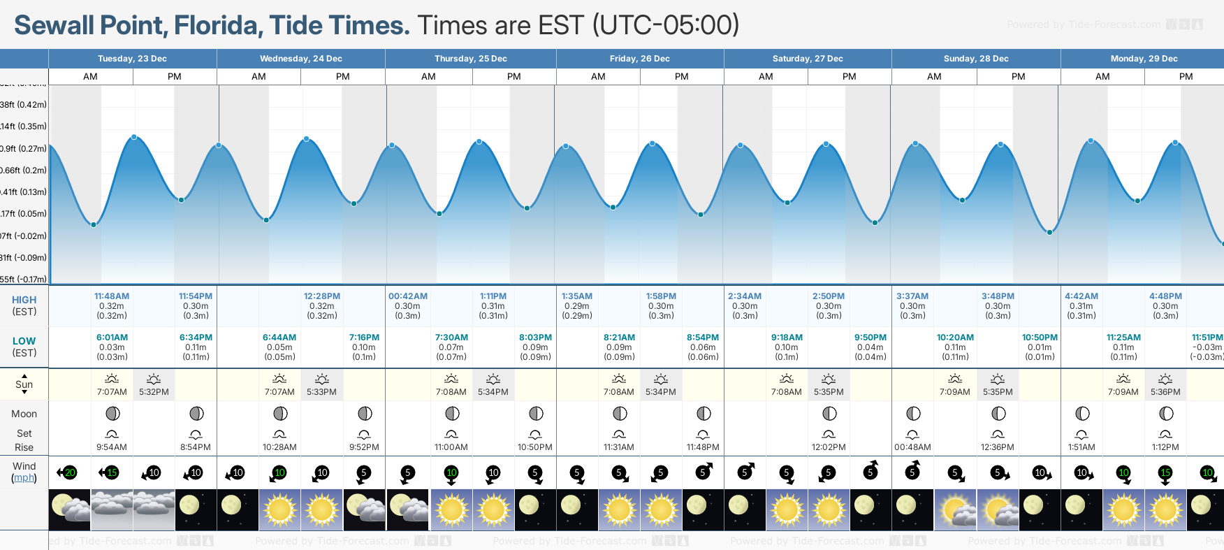 Tide Times for Sewall's Point (tomorrow): Wednesday 24 December 2025