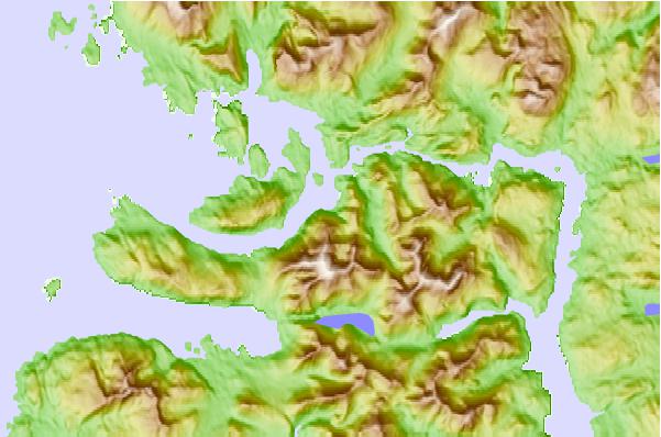 Use this relief map to navigate to tide stations, surf breaks and cities that are in the area of Shakan Strait, Kosciusko Island, Alaska.