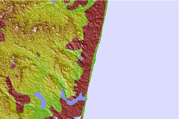 Use this relief map to navigate to tide stations, surf breaks and cities that are in the area of Shark River Island, fixed Railroad bridge, New Jersey.