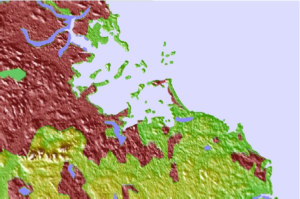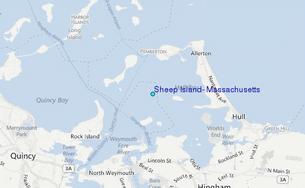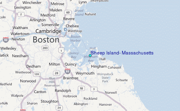 Use this relief map to navigate to tide stations, surf breaks and cities that are in the area of Sheep Island, Massachusetts.