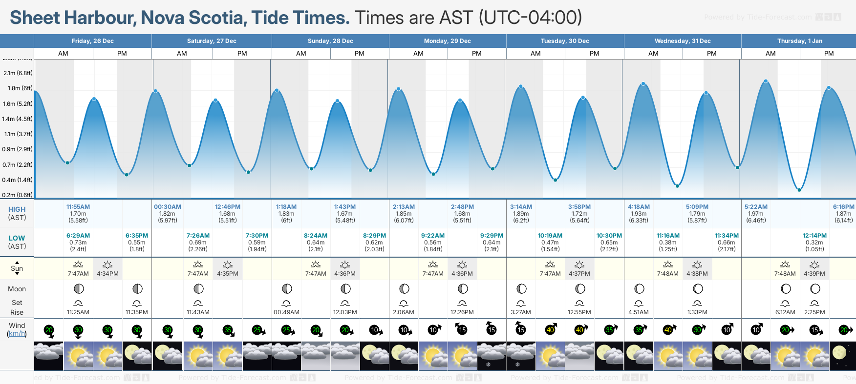 Tide Times for Sheet Harbour (tomorrow): Friday 26 December 2025