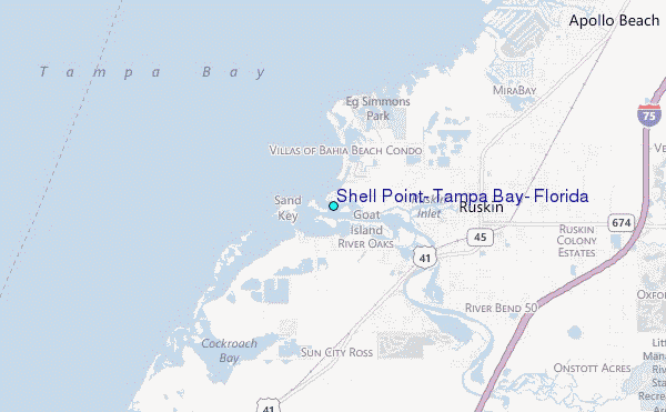 Use this relief map to navigate to tide stations, surf breaks and cities that are in the area of Shell Point, Tampa Bay, Florida.