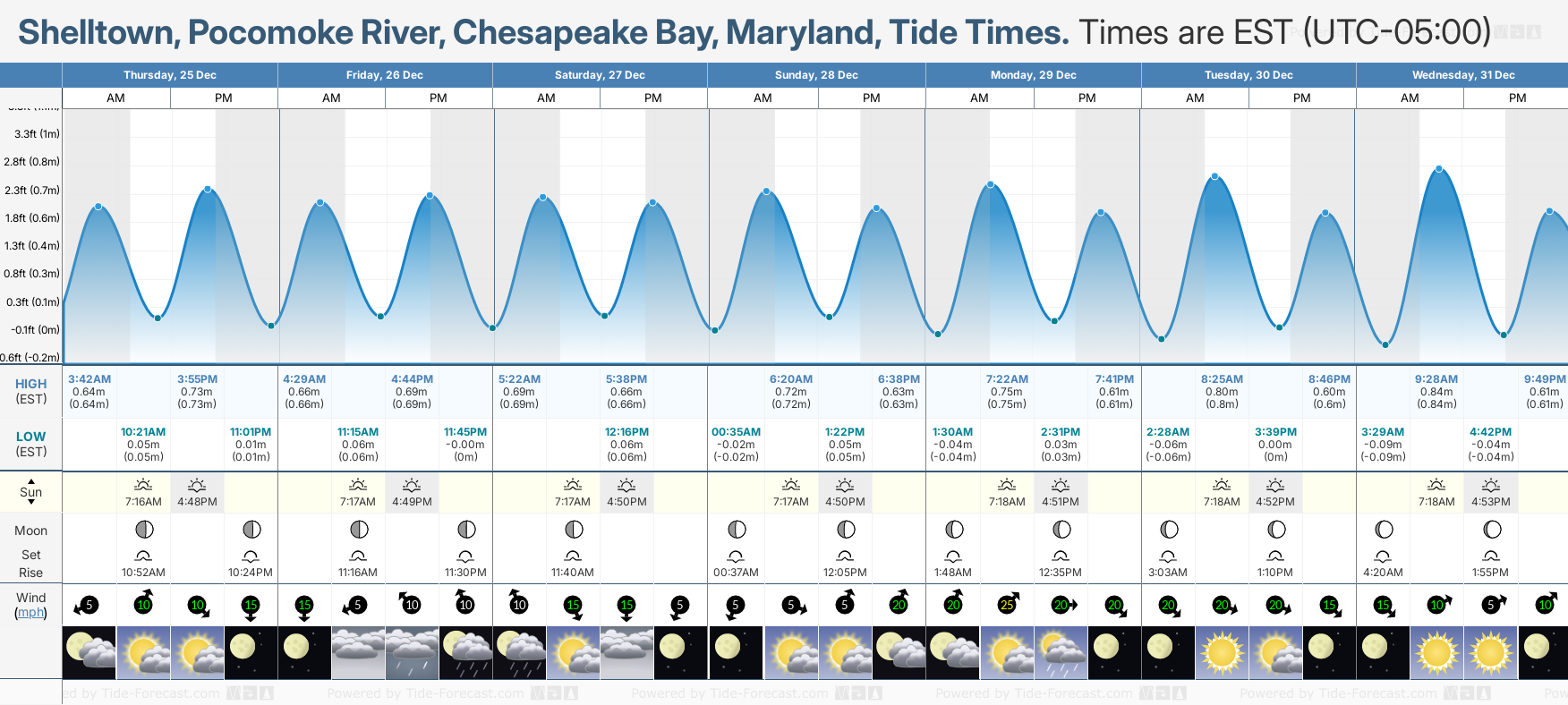 Tide Times for Shelltown, Pocomoke River, Chesapeake Bay (tomorrow): Thursday 25 December 2025