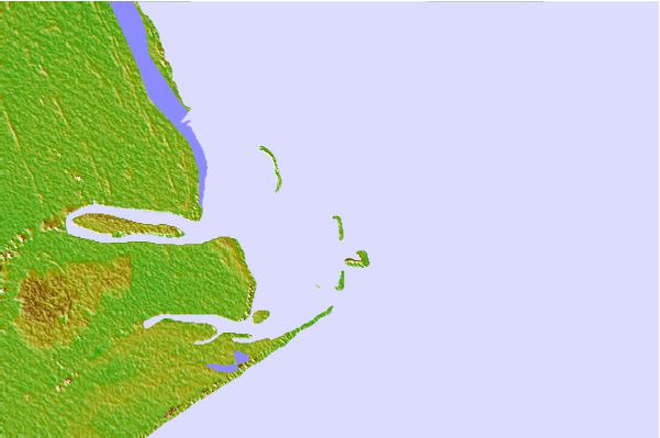 Use this relief map to navigate to tide stations, surf breaks and cities that are in the area of Shortt Island, India.