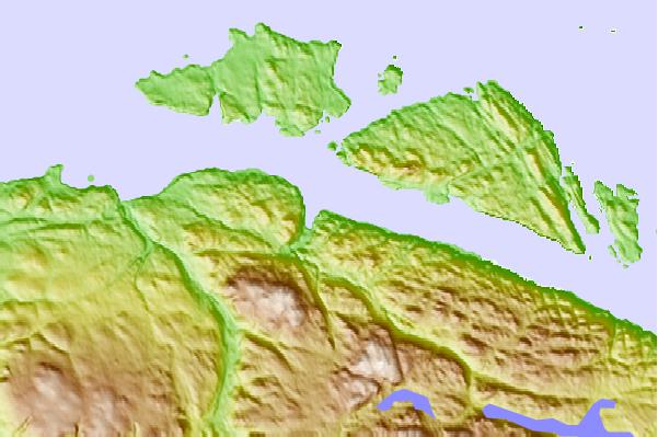 Use this relief map to navigate to tide stations, surf breaks and cities that are in the area of Shushartie Bay, British Columbia.