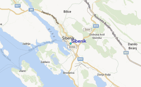 Use this relief map to navigate to tide stations, surf breaks and cities that are in the area of Sibenik.