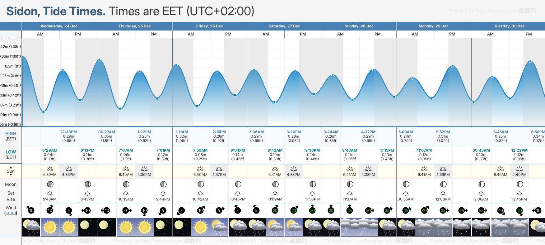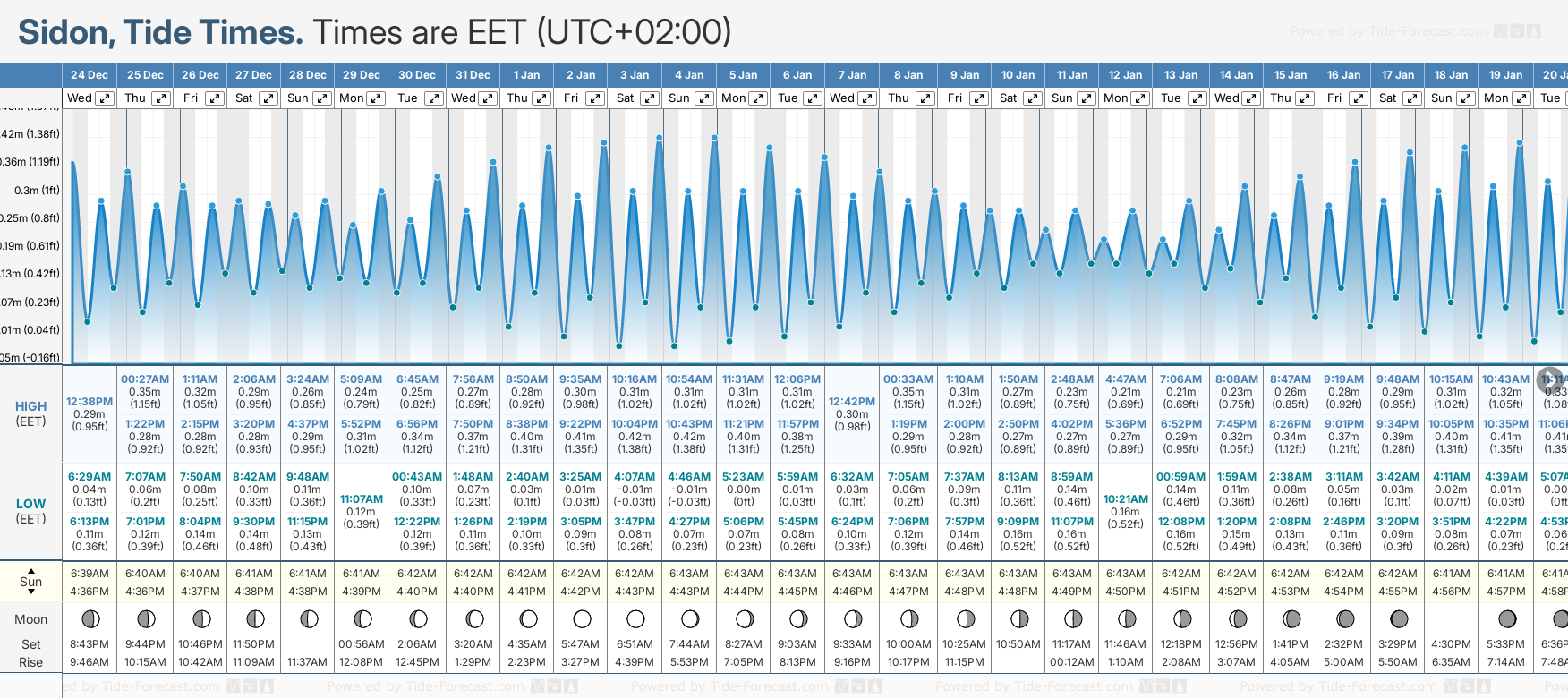 Tide Times for Sidon (tomorrow): Wednesday 24 December 2025