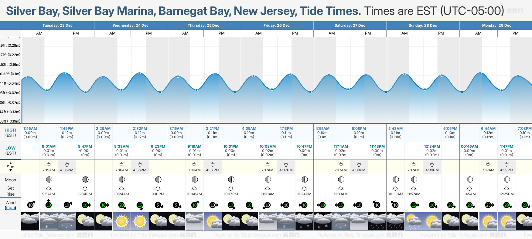 Tide Times for Silver Bay, Silver Bay Marina, Barnegat Bay (tomorrow): Wednesday 24 December 2025