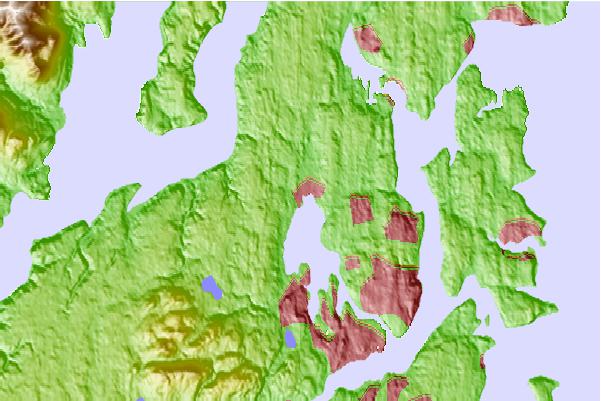 Use this relief map to navigate to tide stations, surf breaks and cities that are in the area of Silverdale.