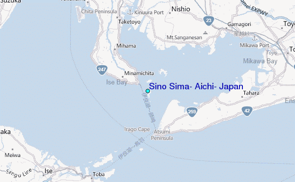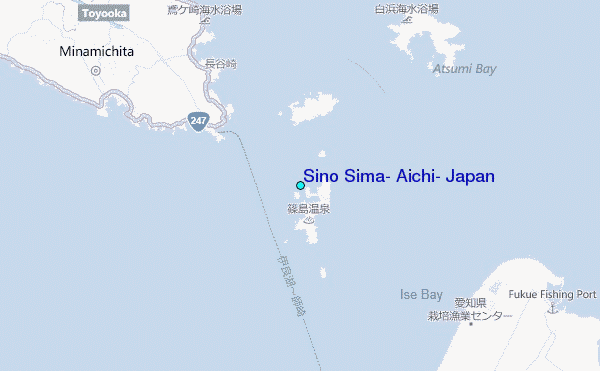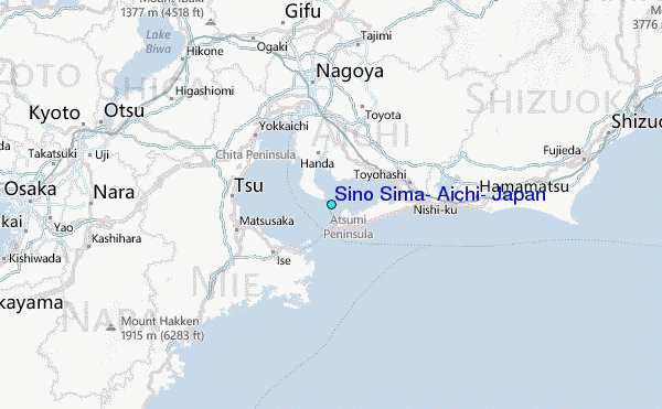 Use this relief map to navigate to tide stations, surf breaks and cities that are in the area of Sino Sima, Aichi, Japan.
