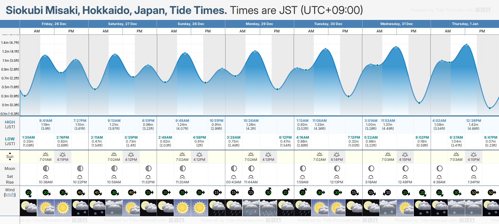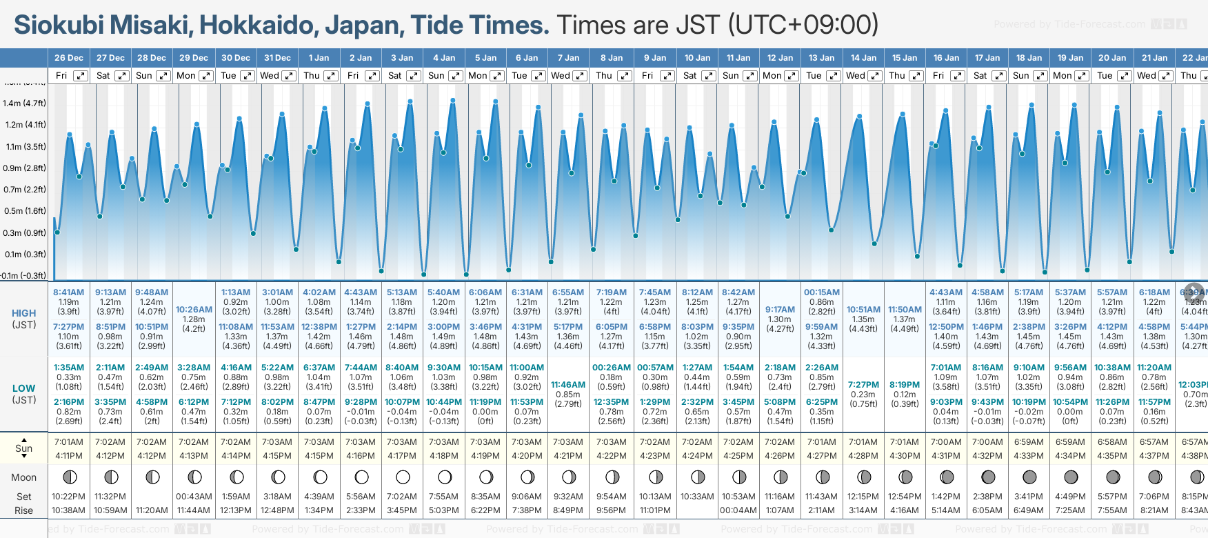 Tide Times for Siokubi Misaki (tomorrow): Friday 26 December 2025