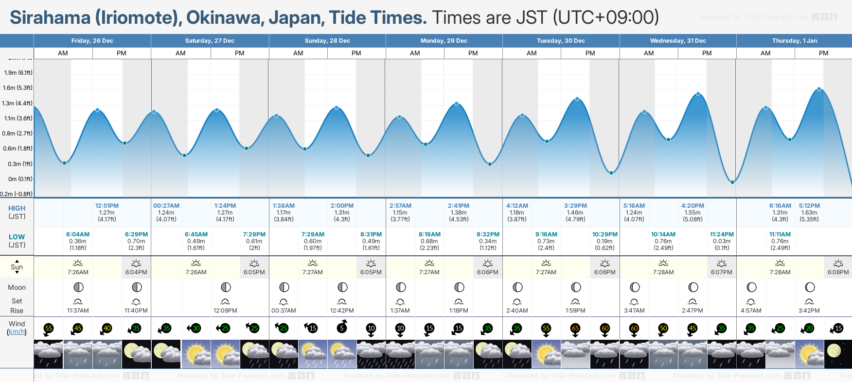 Tide Times for Sirahama (Iriomote) (tomorrow): Friday 26 December 2025