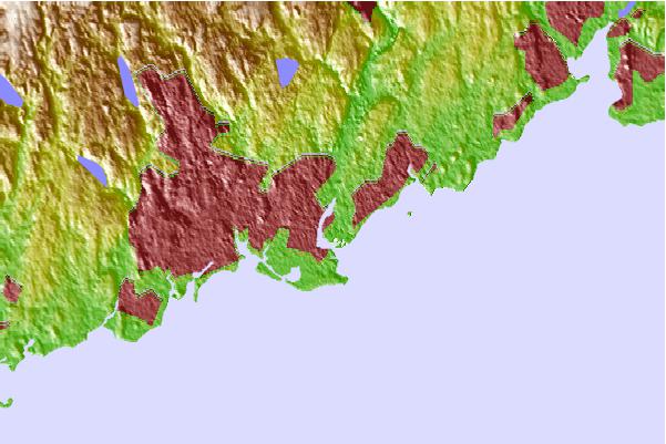 Use this relief map to navigate to tide stations, surf breaks and cities that are in the area of Sniffens Point, Housatonic River, Connecticut.