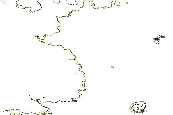 Use this relief map to navigate to tide stations, surf breaks and cities that are in the area of Sord.