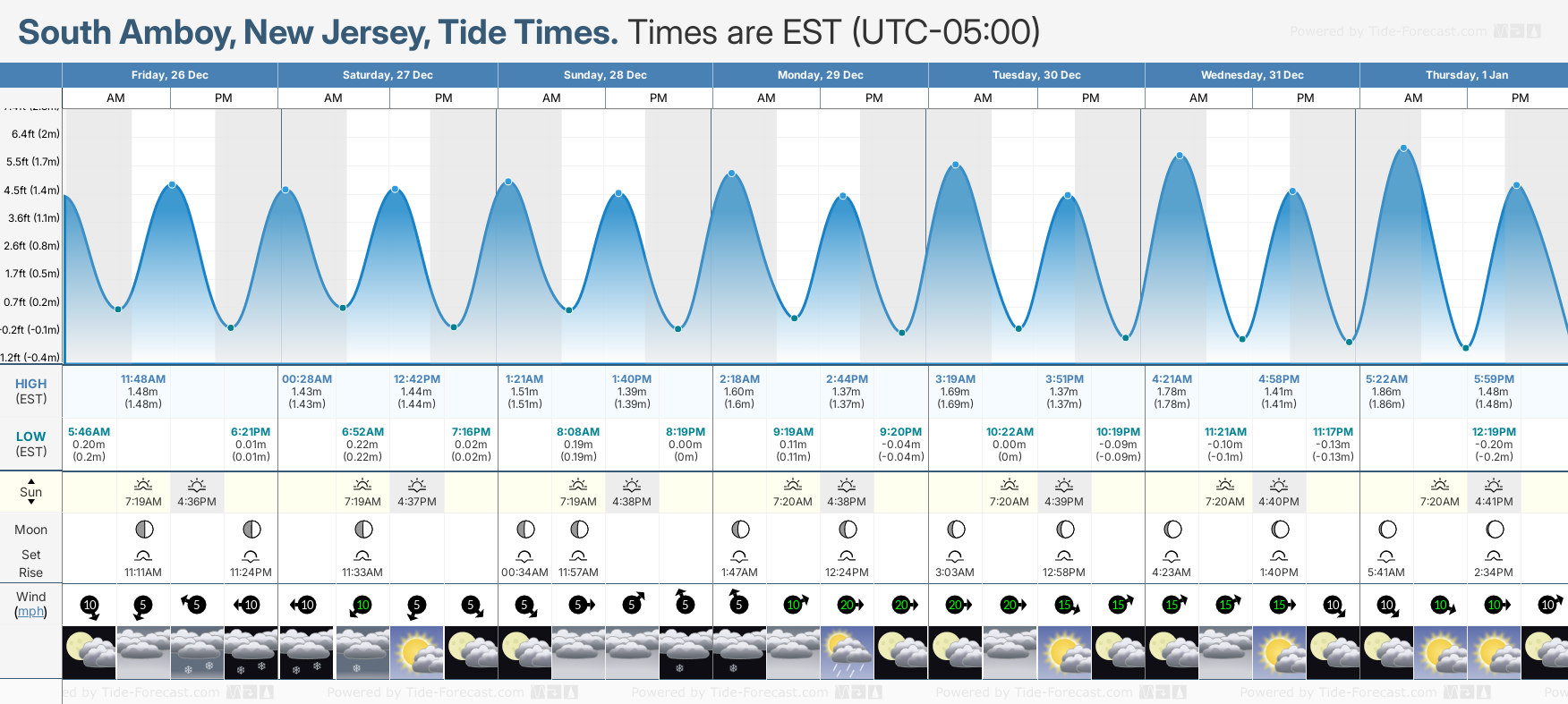 NOTE: Use of this site for South Amboy, New Jersey tide times is subject to our terms.