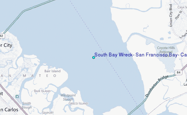 Choose South Bay Wreck, San Francisco Bay, California Location Map Zoom: