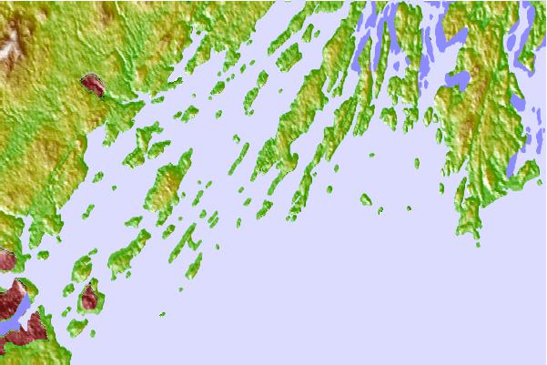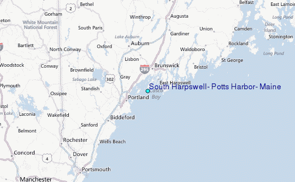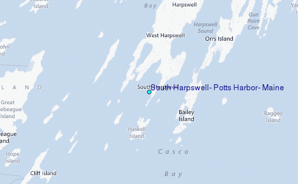 Use this relief map to navigate to tide stations, surf breaks and cities that are in the area of South Harpswell, Potts Harbor, Maine.