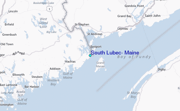 Use this relief map to navigate to tide stations, surf breaks and cities that are in the area of South Lubec, Maine.