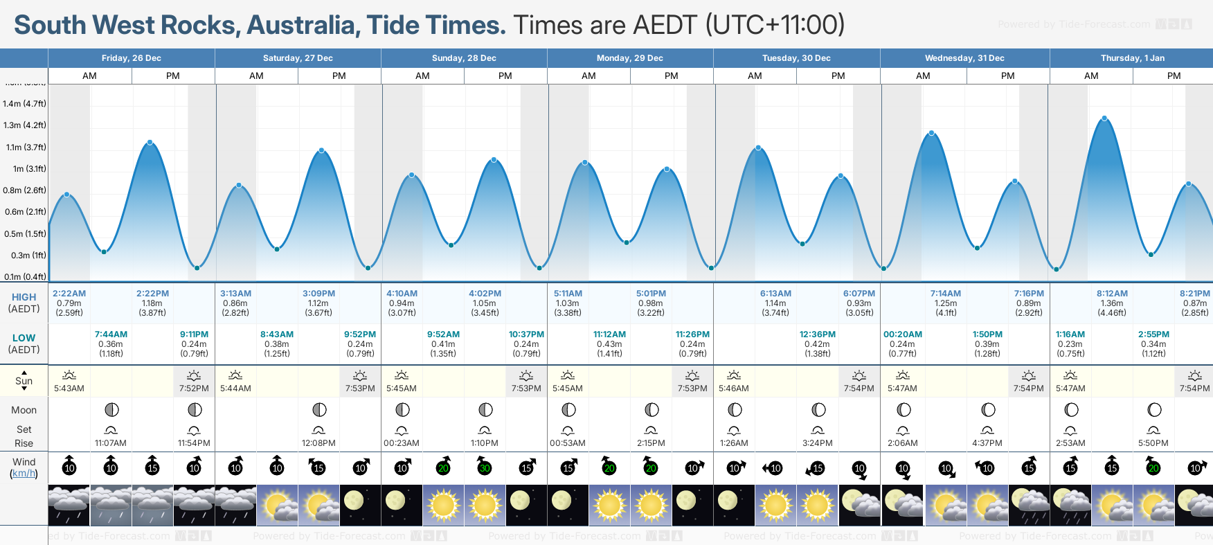 NOTE: Use of this site for South West Rocks, Australia tide times is subject to our terms.