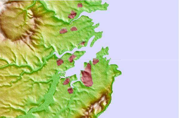 Use this relief map to navigate to tide stations, surf breaks and cities that are in the area of Sovetskaya, Russia.