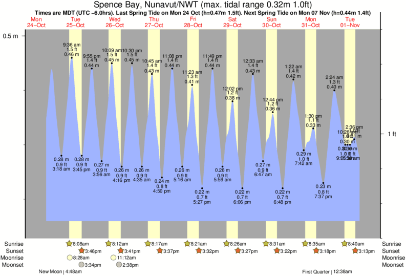 Tide chart for Spence BayShowing low and high tide times for the next 30 days at Spence Bay. Tide Times are MST (UTC -7.0hrs).