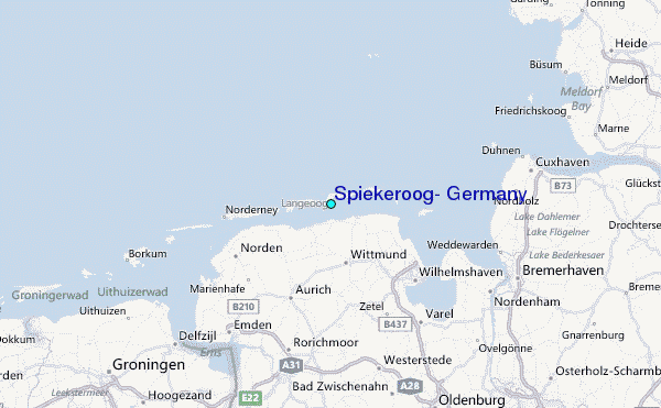 Use this relief map to navigate to tide stations, surf breaks and cities that are in the area of Spiekeroog, Germany.