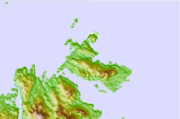 Use this relief map to navigate to tide stations, surf breaks and cities that are in the area of Spruce Island (north side), Alaska.