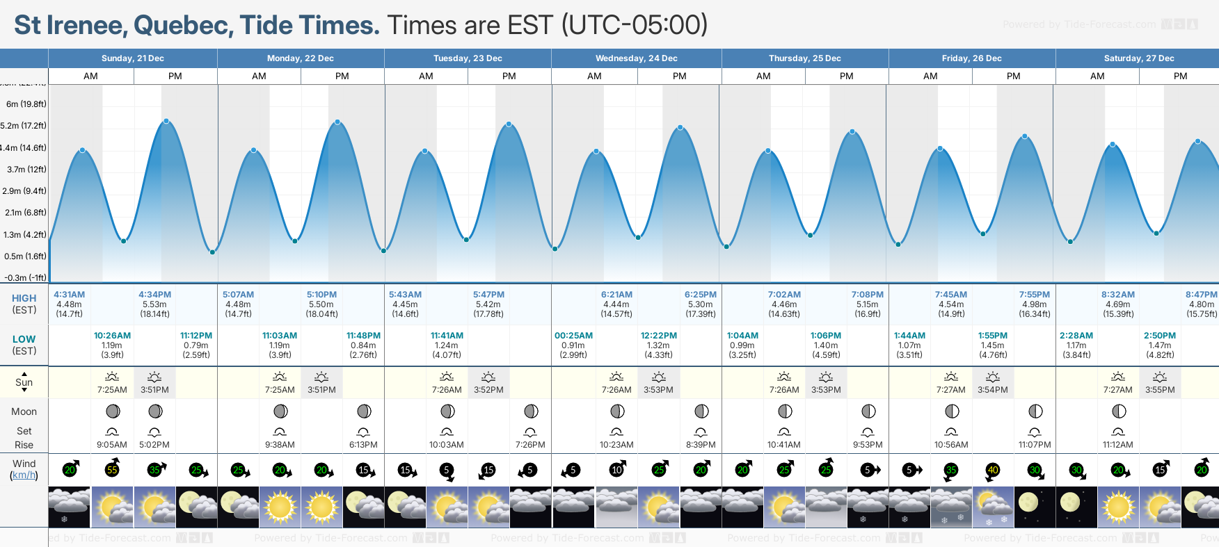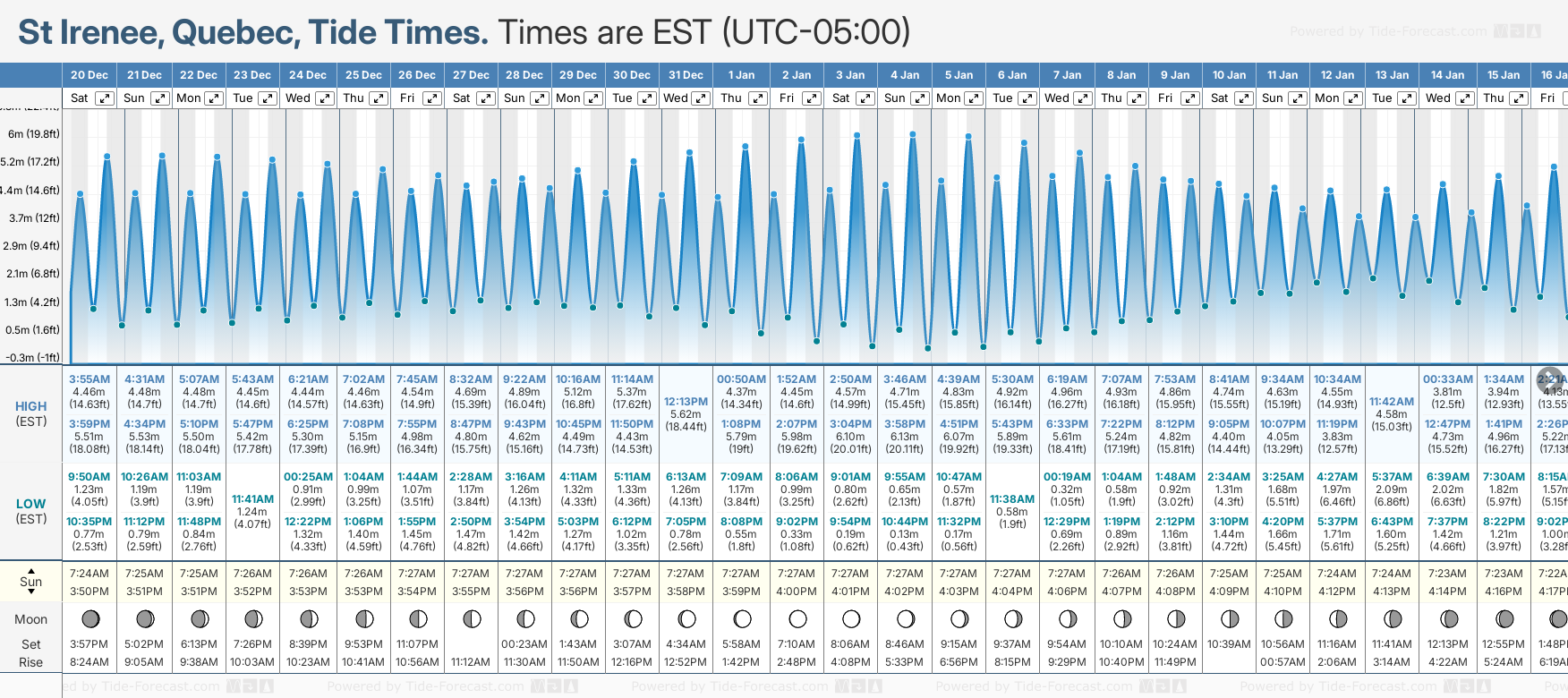 December and January Tide charts for St Irenee: The tide charts below show the height, time and date of high and low tides for the next 30 days.