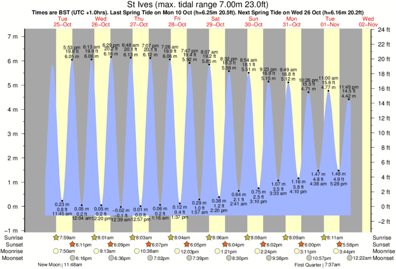 December and January Tide charts for St Ives: The tide charts below show the height, time and date of high and low tides for the next 30 days.
