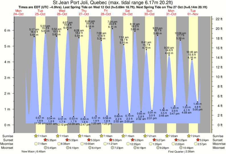 Tide chart for St Jean Port JoliShowing low and high tide times for the next 30 days at St Jean Port Joli. Tide Times are EST (UTC -5.0hrs).
