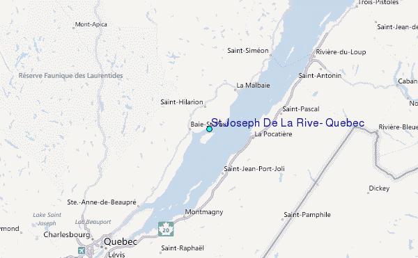 Other Nearby Locations' tide tables and tide charts to St Joseph De La Rive, Quebec: