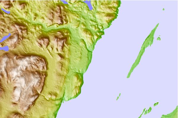 Use this relief map to navigate to tide stations, surf breaks and cities that are in the area of St Simeon, Quebec.