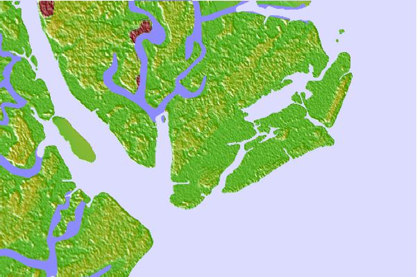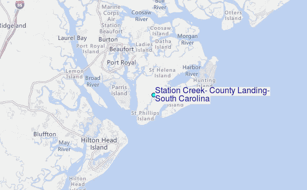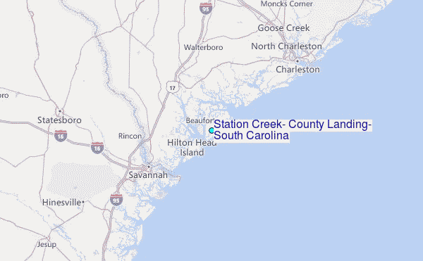 Use this relief map to navigate to tide stations, surf breaks and cities that are in the area of Station Creek, County Landing, South Carolina.