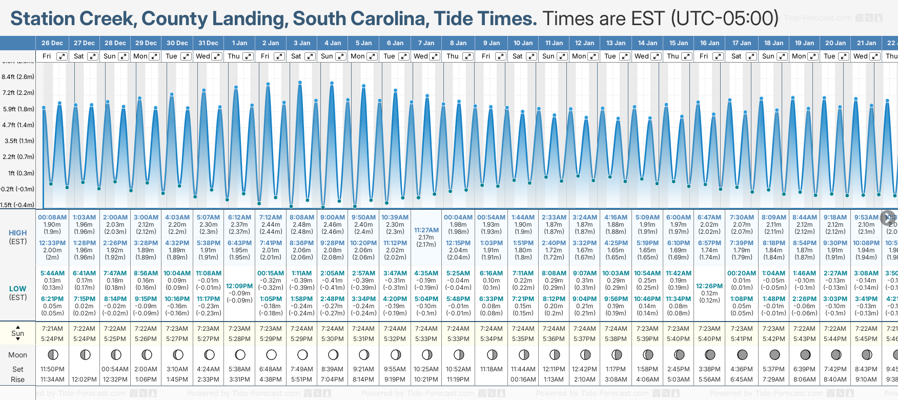 NOTE: Use of this site for Station Creek, County Landing, South Carolina tide times is subject to our terms.